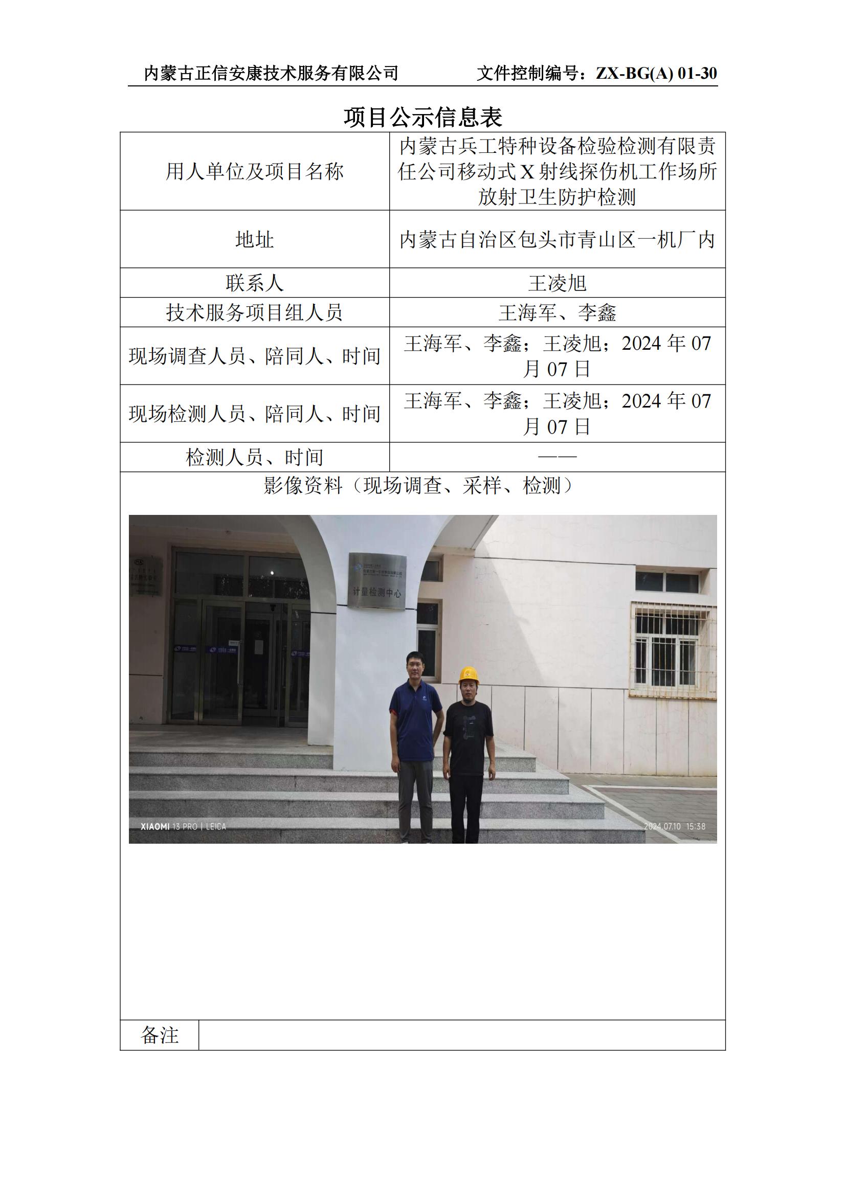 內(nèi)蒙古兵工特種設(shè)備檢驗(yàn)檢測(cè)有限責(zé)任公司移動(dòng)式 X 射線探傷機(jī)工作場(chǎng)所放射衛(wèi)生防護(hù)檢測(cè)
